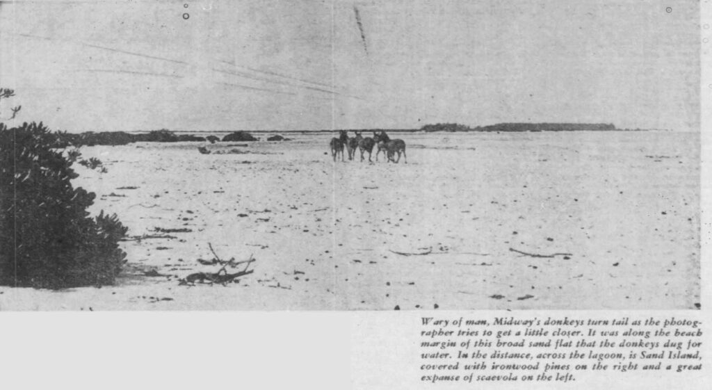 Tolls and isolation can get under a man’s skin, and in earlier days some disillusioned sojourners on Midway jokingly called themselves “jackasses.” But the Midway story here is about the real quadrupeds—the common domestic donkey, Equus asinus—colloquially nicknamed the Eastern Island Nightingale.